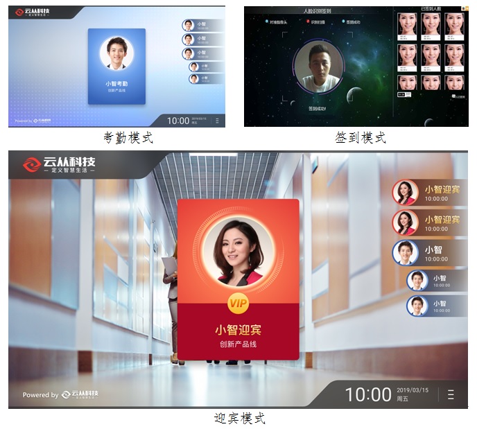 小智考勤终端,采用云从自主算法,拥有先进人脸识别技术进行迎宾、考勤、签到、门禁控制等多方面前台工作,能根据前台进行模式切换,考勤迎宾体验佳;无缝对接现有门禁系统,实现无感知非配合的智能考勤与门禁。另外管理平台还能对公司组织架构、员工信息等进行管理。这种智能的迎宾门禁考勤方案对于全面提升前台智能化水准、公司形象、员工便捷和服务效益具有切实的帮助。